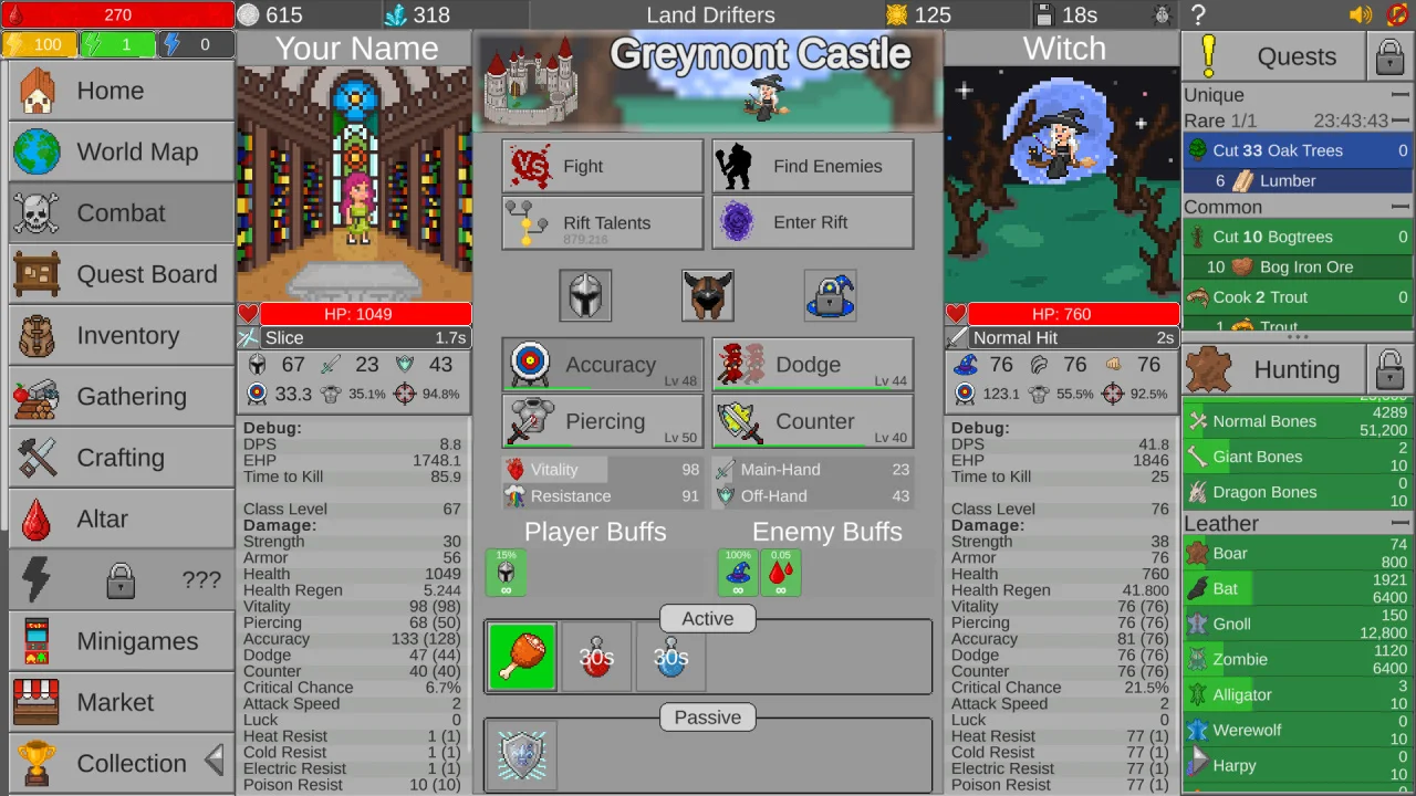 Land Drifters — это инкрементальная ролевая игра в средневековом сеттинге, где игрок развивает героя через постоянное освоение ремёсел, боевых навыков и исследование мира, сочетающего рутину с увлекательными испытаниями.