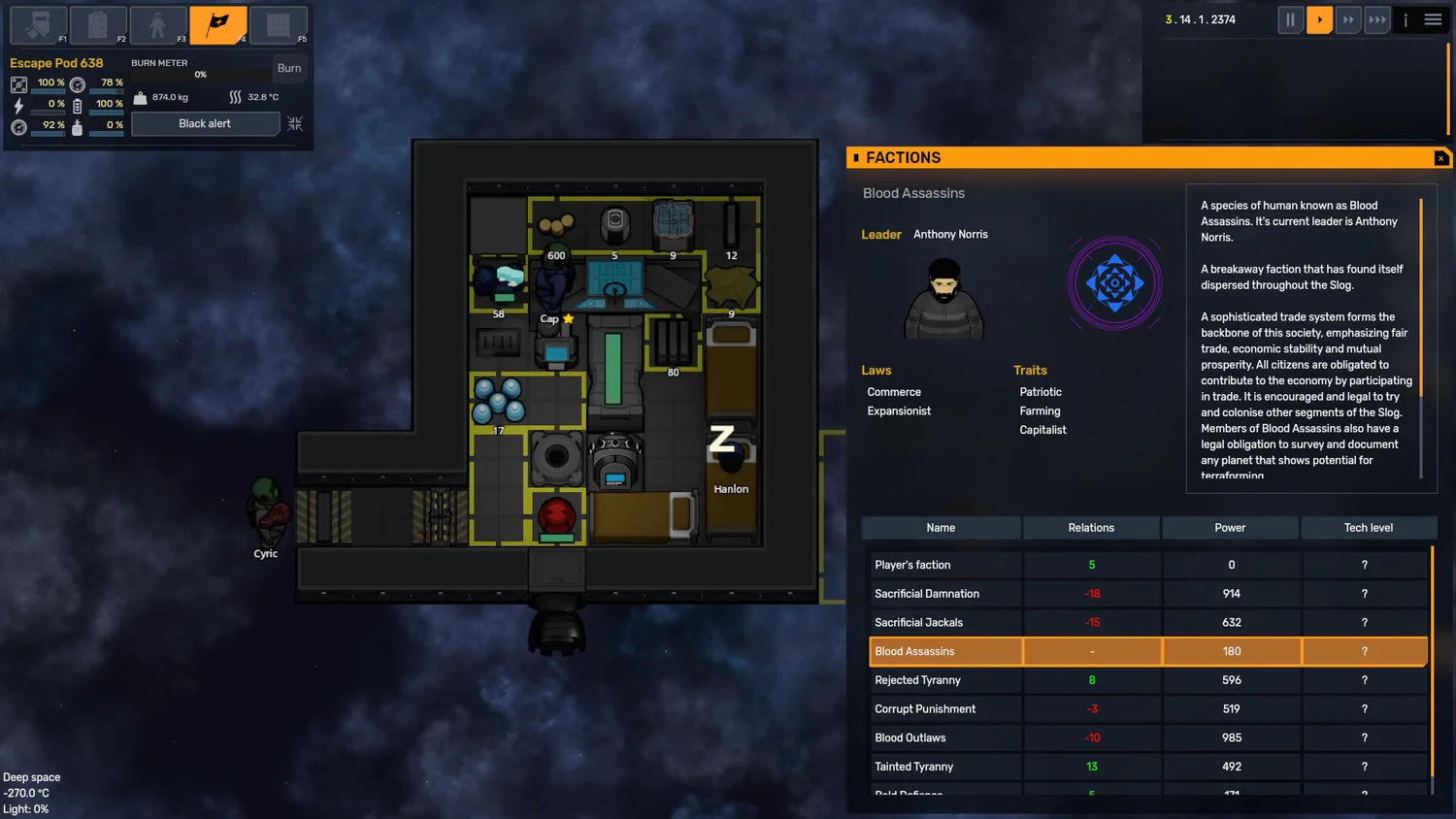 Игровой процесс и механики: вдохновлённая Rimworld, Dwarf Fortress, X‑COM, а также сериалами Firefly и The Expanse, SpaceSlog предлагает многогранный геймплей. Вам предстоит исследовать процедурно сгенерированную галактику, торговать с разными фракциями, вступать в сражения и бороться за выживание. Ключевой элемент — строительство кораблей с нуля: вы полностью контролируете их планировку и управляете сложными системами — электроснабжения, атмосферы, температуры и освещения. От корректной настройки этих систем напрямую зависит жизнь экипажа.