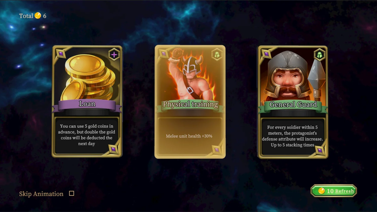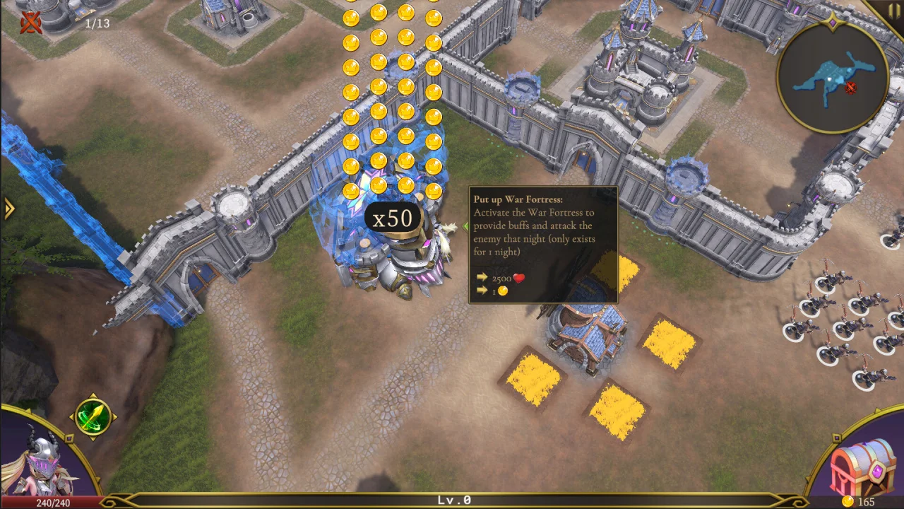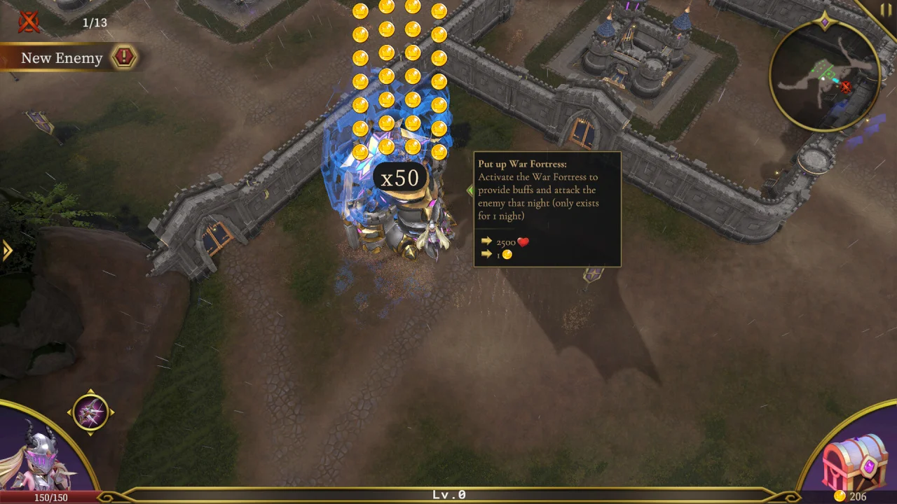 Задачи и сложность: игра предлагает 9 уникальных арен с постепенно возрастающей сложностью. Чтобы успешно противостоять натиску врагов, игроку необходимо одновременно решать несколько стратегических задач: распределять добытые материалы для непрерывного развития поселения, расставлять наёмников вдоль линии фронта для создания надёжного заслона, использовать блага, полученные в сражениях, чтобы получить преимущество над толпами монстров, и удерживать оборону до рассвета — именно тогда наступает время решающей схватки с главным чудовищем. Успех зависит не только от тактического планирования, но и от личной реакции: каждое ночное нападение требует максимальной концентрации и быстрой адаптации к меняющимся условиям боя.