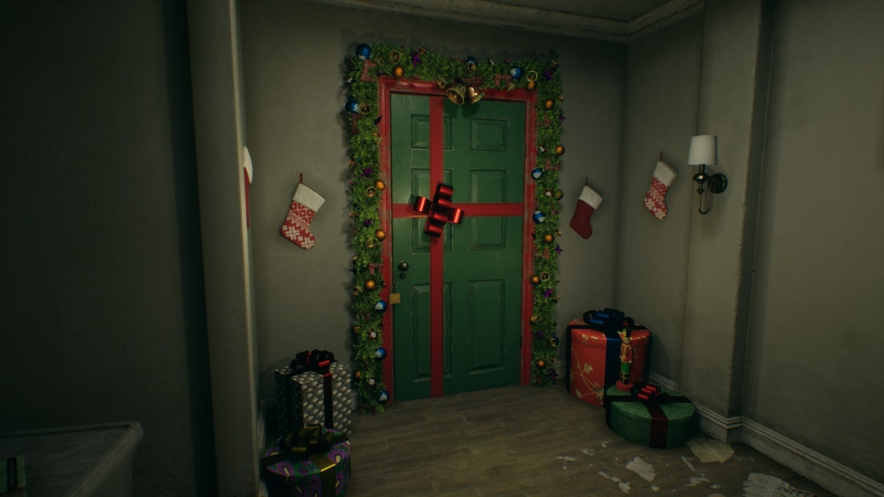 Визуальный стиль игры создает контрастное сочетание праздничной рождественской атмосферы с элементами паранормального ужаса, что создает уникальную атмосферу напряжения и тревоги.