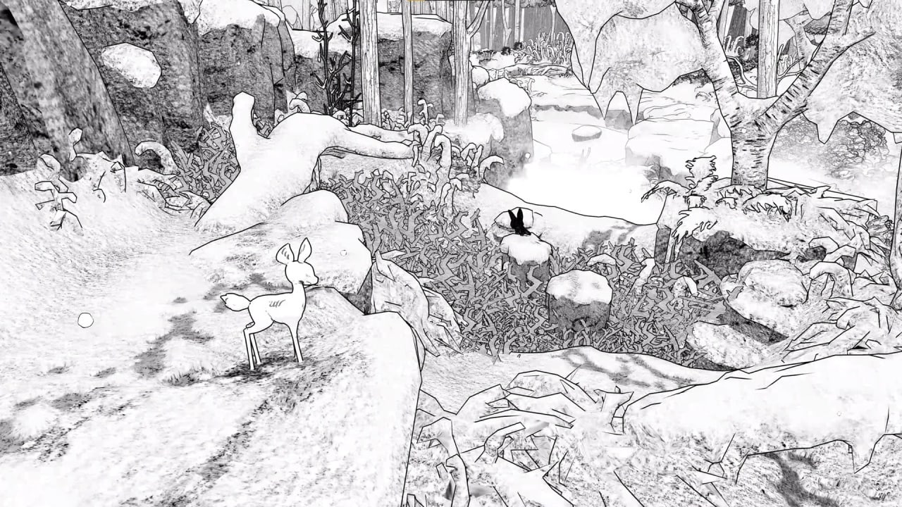 В центре истории - трогательная дружба между волчонком и олененком, потерявшимися во время внезапной снежной бури. Их путь к воссоединению с семьями пролегает через заснеженные просторы, где единственным ориентиром служат следы на снегу. Ключевой элемент повествования - это обучение доверию между двумя совершенно разными существами, которые должны научиться полагаться друг на друга. Весь сюжет подается без единого слова, позволяя игрокам самим прочувствовать атмосферу и эмоции происходящего.