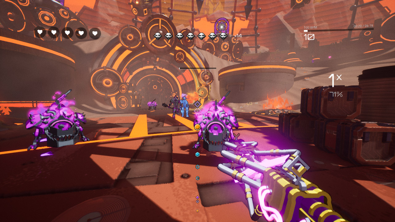 GUN JAM предлагает уникальный игровой опыт, где музыка становится неотъемлемой частью геймплея, а каждое попадание по врагу сопровождается не только визуальным, но и звуковым эффектом, создавая полное погружение в игровой процесс.